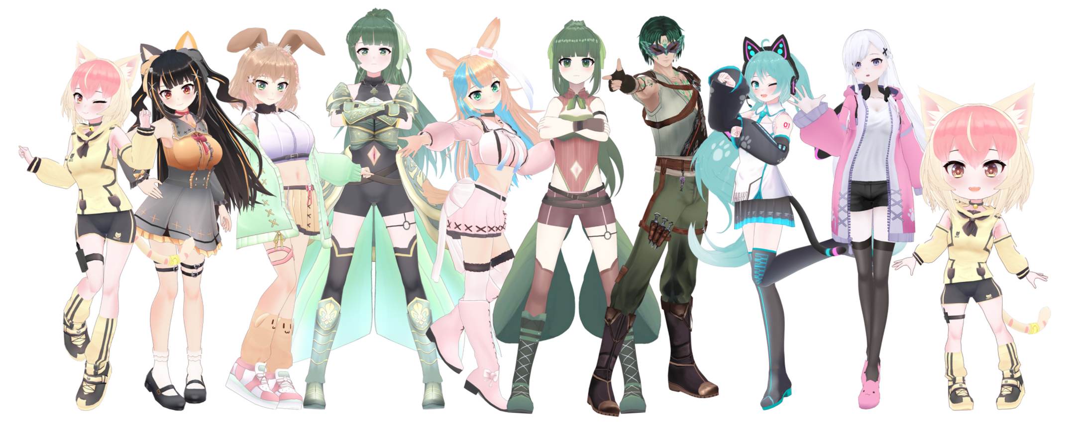 All this 3D character models were made with Vroid. Why Vroid? Texture modeling with Vroid is almost the same as drawing illustrations.
